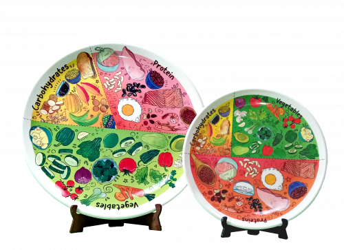 Two custom-designed plates created as an addendum to the project. Both made portion control visual and intuitive, offering patients a daily, hands-on tool to follow nutrition guidelines without confusion.