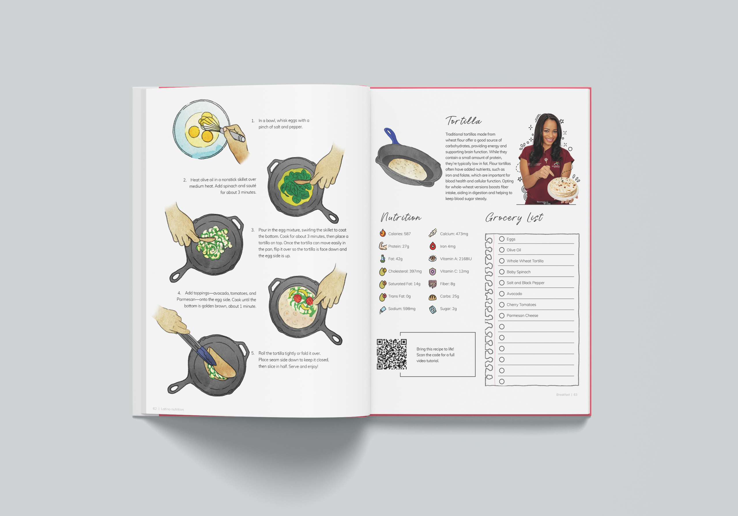 The centerpiece of the project, crafted with layouts that made recipes easy to follow, integrated nutritional articles to explain the “why” behind food choices, and visuals that reflected Latino culture with pride. This transformed a simple cookbook into a trusted, culturally sensitive resource.