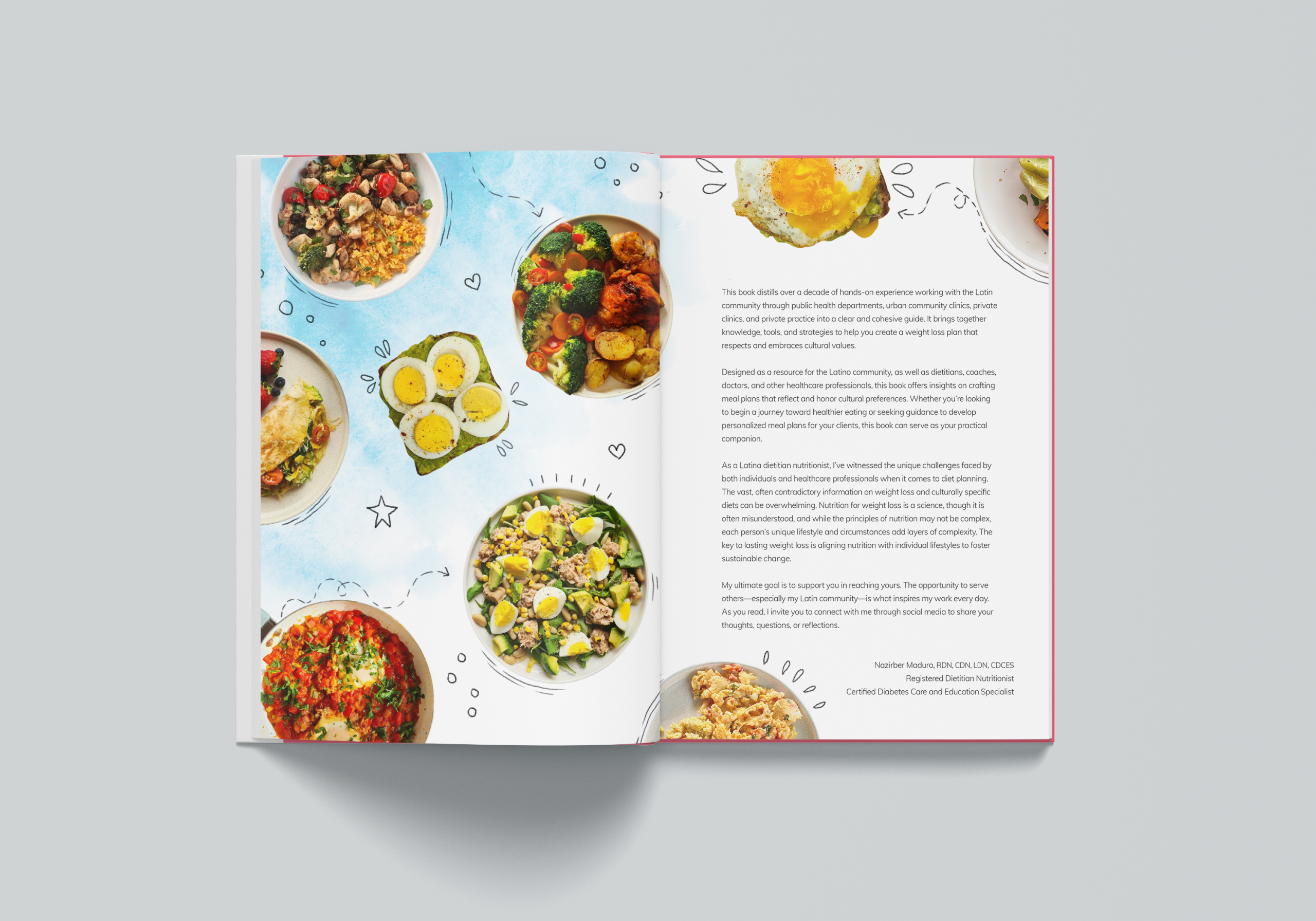 Goals: Beyond creating “just a cookbook,” Naz wanted a professional resource that patients could easily understand and truly feel supported by in their weight-loss journey. The book needed to celebrate Latino gastronomic heritage while translating nutritional science into practical, culturally relevant guidance.