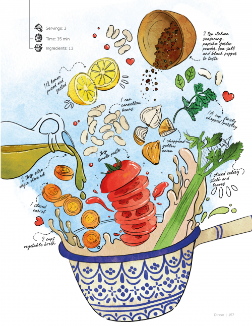 Recipe layouts were restructured for clarity and ease of use, with simplified steps and practical tips. Where photography felt generic, we worked to frame it as vibrant, aspirational, and consistent with the cultural storytelling. Illustration was at the heart of this project. We developed a digital watercolor style combined with playful doodles to make the recipes easy to understand at a glance.